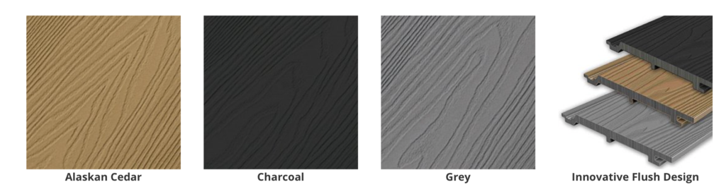 It is available in 3 attractive colours Alaskan Cedar, Grey and Charcoal, all of which feature a stunning deeply embossed woodgrain. If you are not sure what colour you want, why not order a free sample?